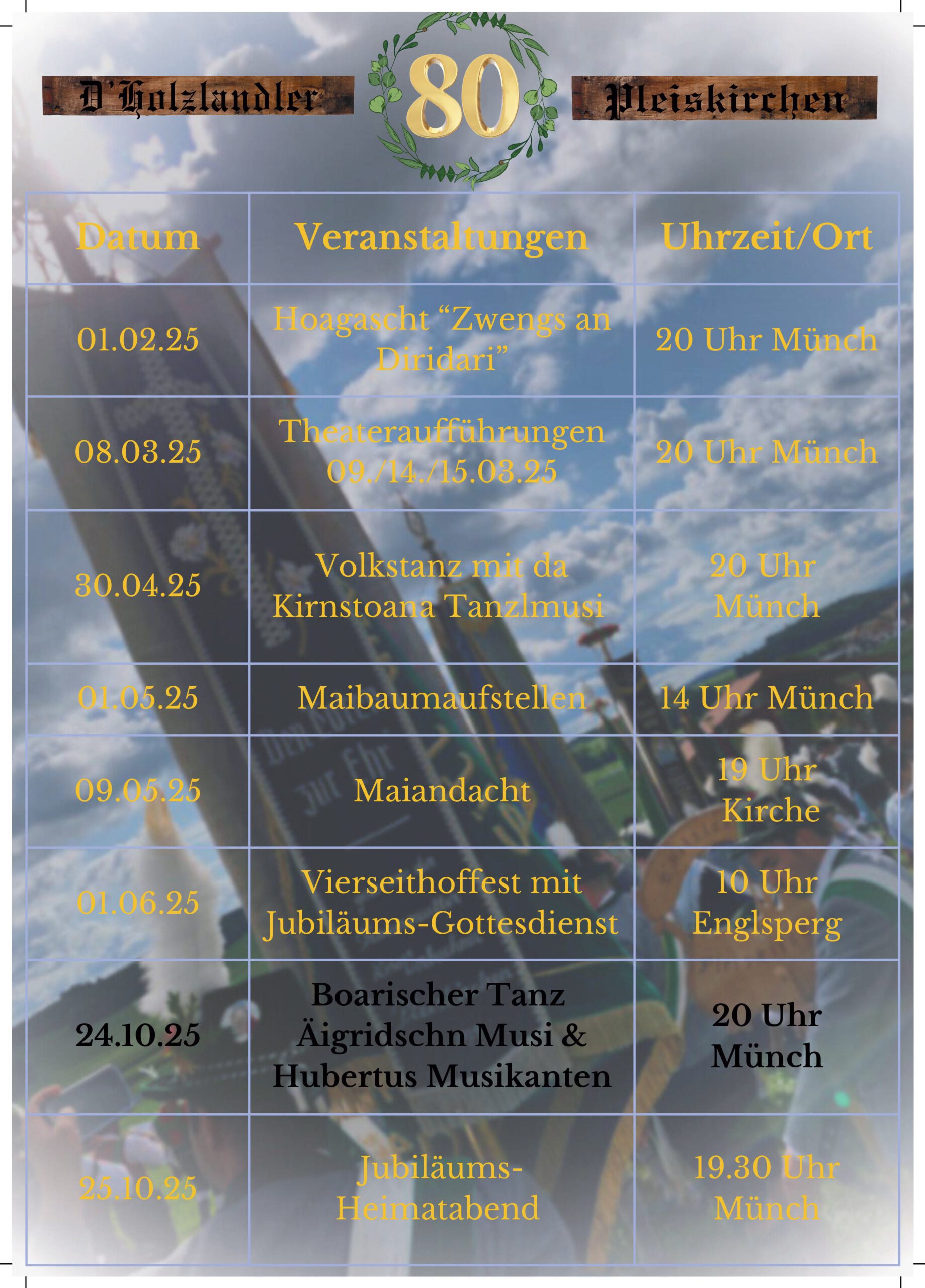 Des war unser Festjahr zum 80-jährigen der Holzlandler Pleiskirchen.